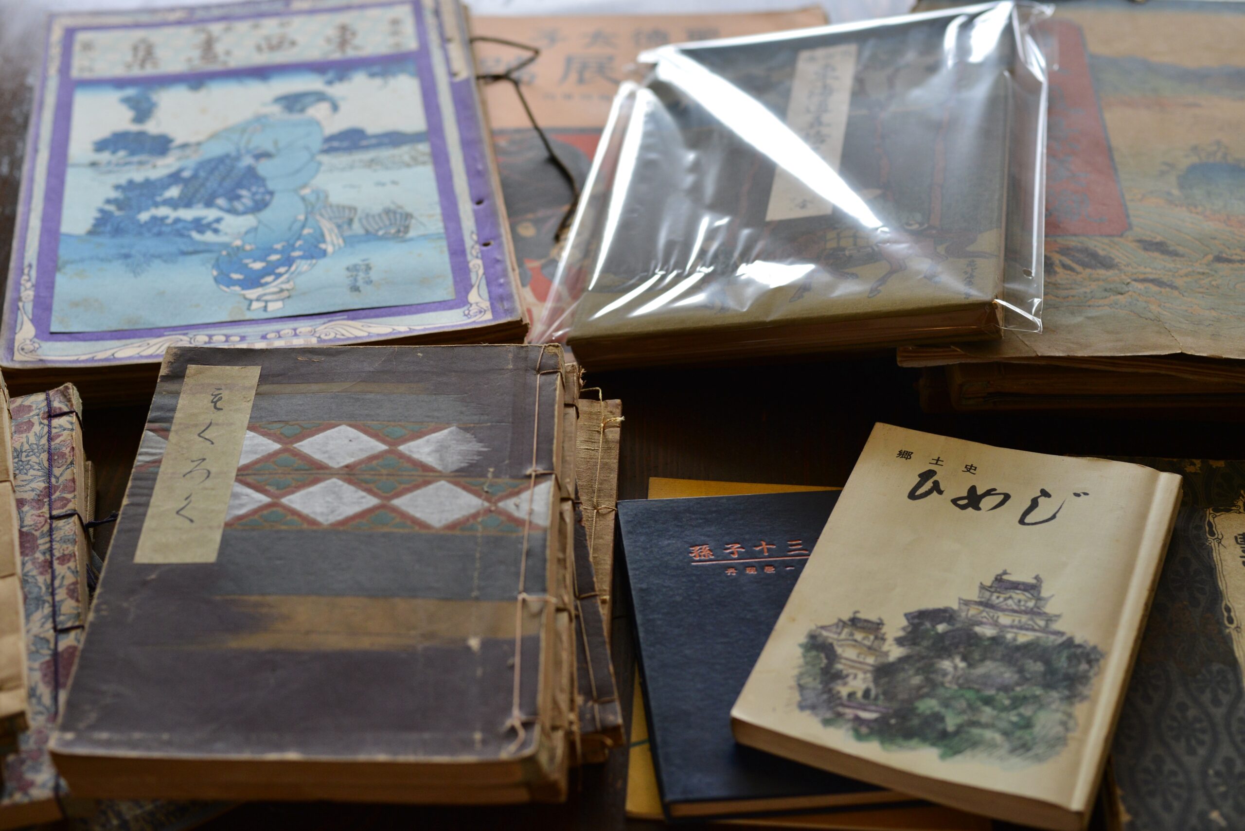 姫路という土地柄か、歴史や郷土史、美術関係の和本も多数あり、検品作業も楽しいです。