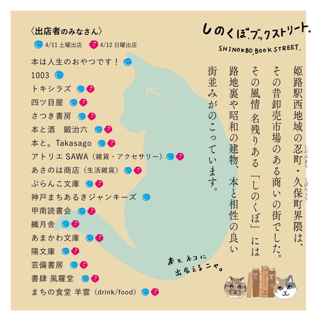 4月12日 しのくぼ、ブックストリート搬出のためお休み(開催・出店は11日、12日)